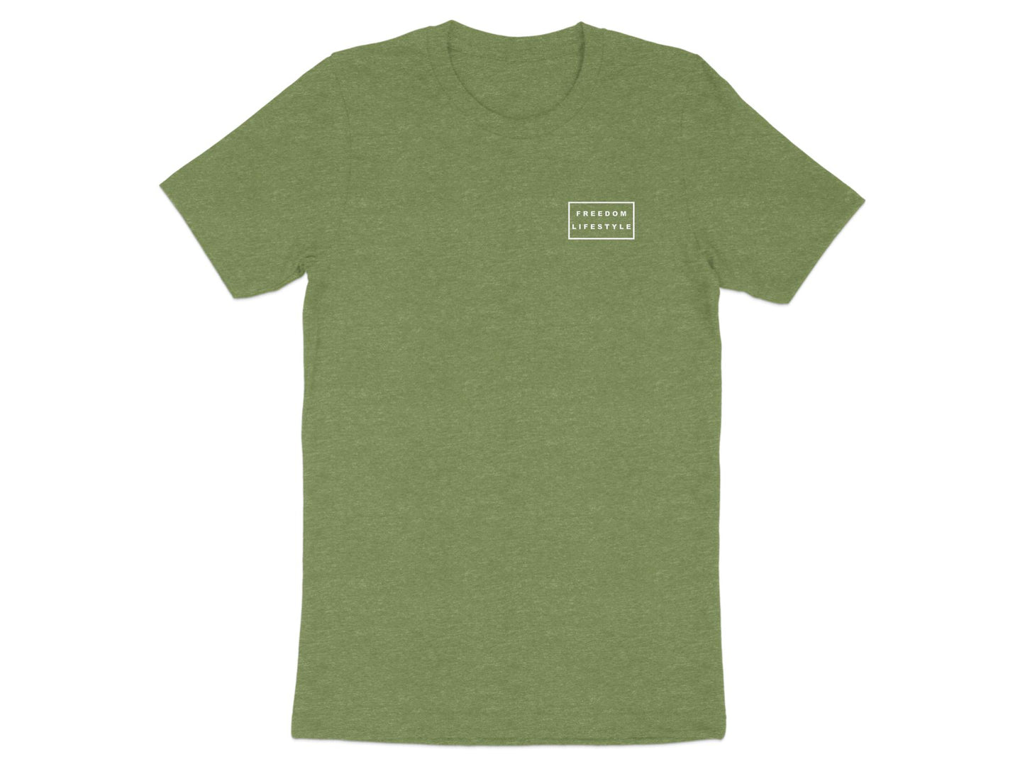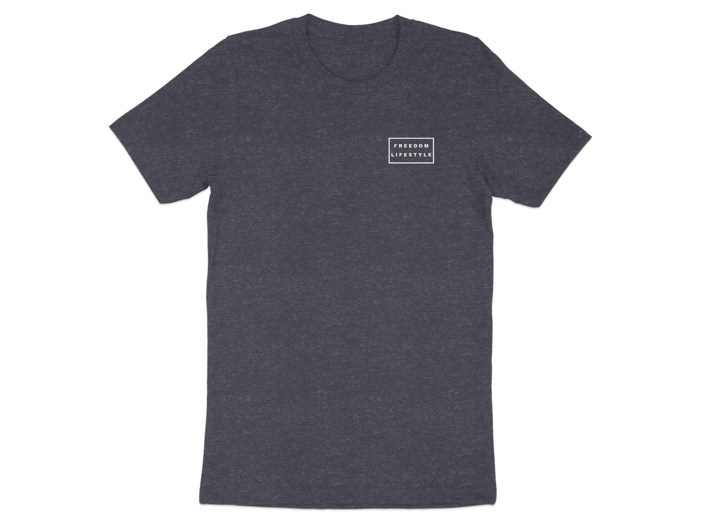 Wearing The Icon Tee to represent Freedom Lifestyle in a simple clean logo placement on the left chest