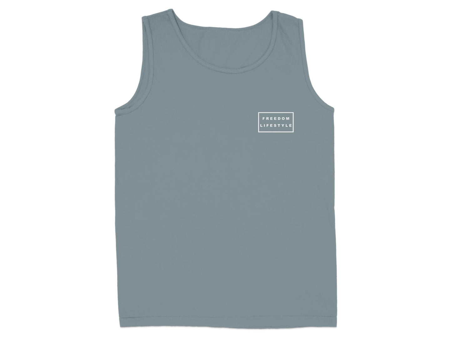 Wearing The Icon Tee to represent Freedom Lifestyle in a simple clean logo placement on the left chest
