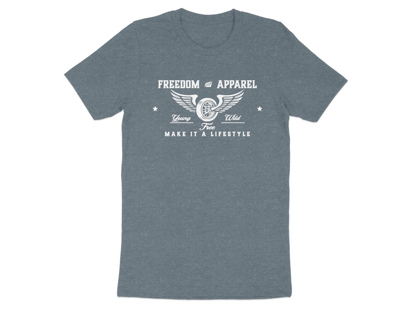 Embrace the adventurous two wheel spirit and represent having the wind blowing thru your hair wearing the Wild and Free Tee!