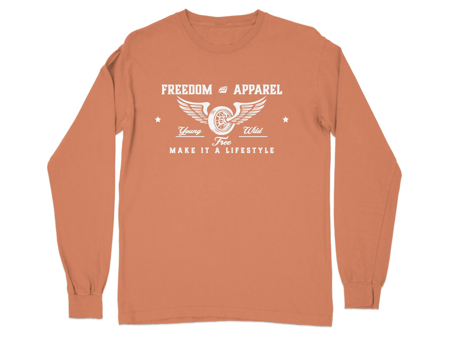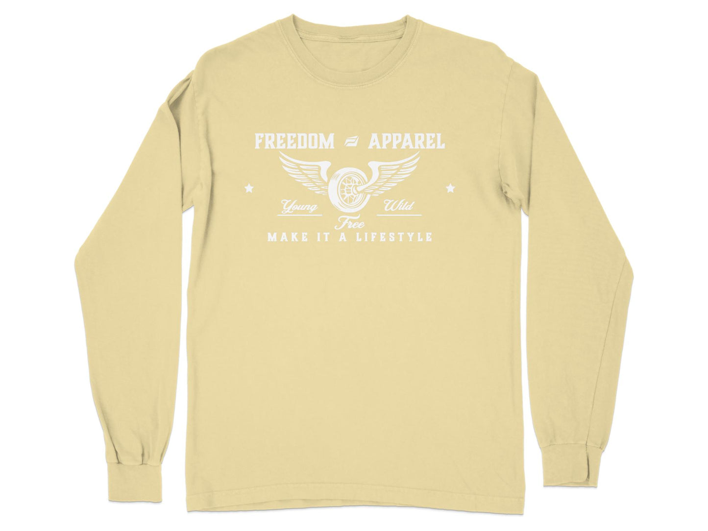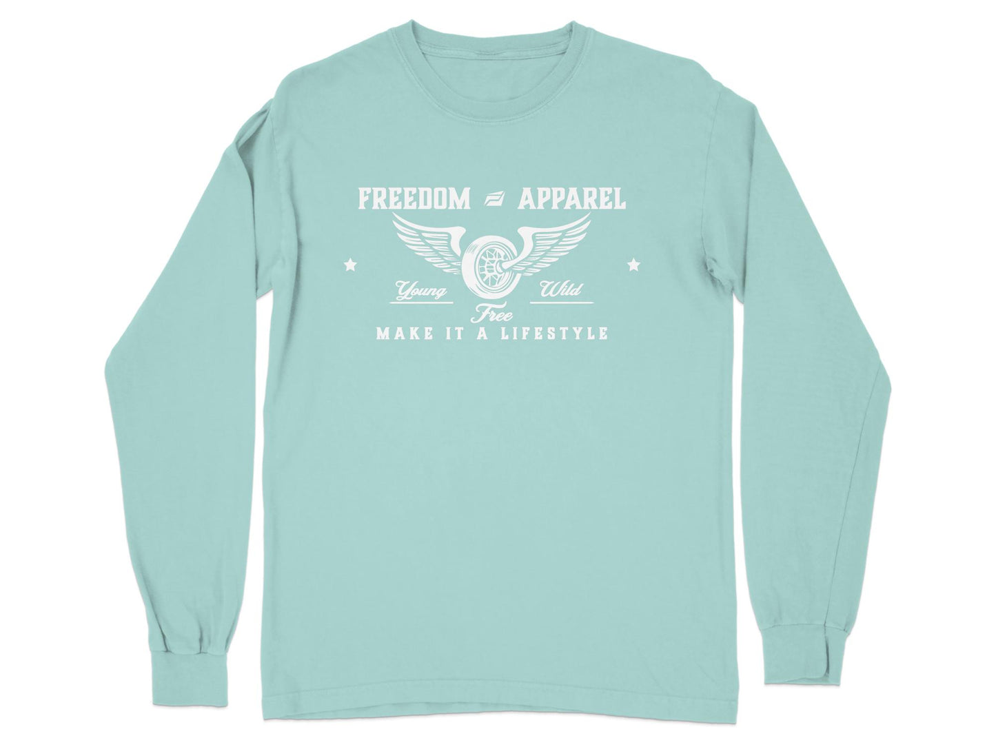 Embrace the adventurous two wheel spirit and represent having the wind blowing thru your hair wearing the Wild and Free Long sleeve