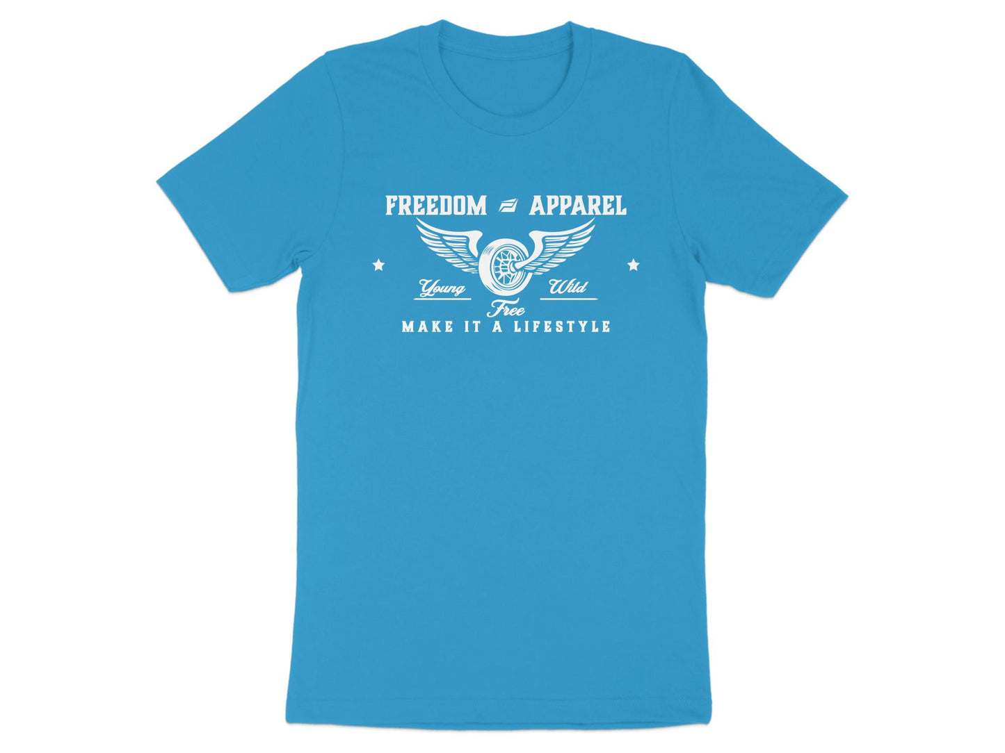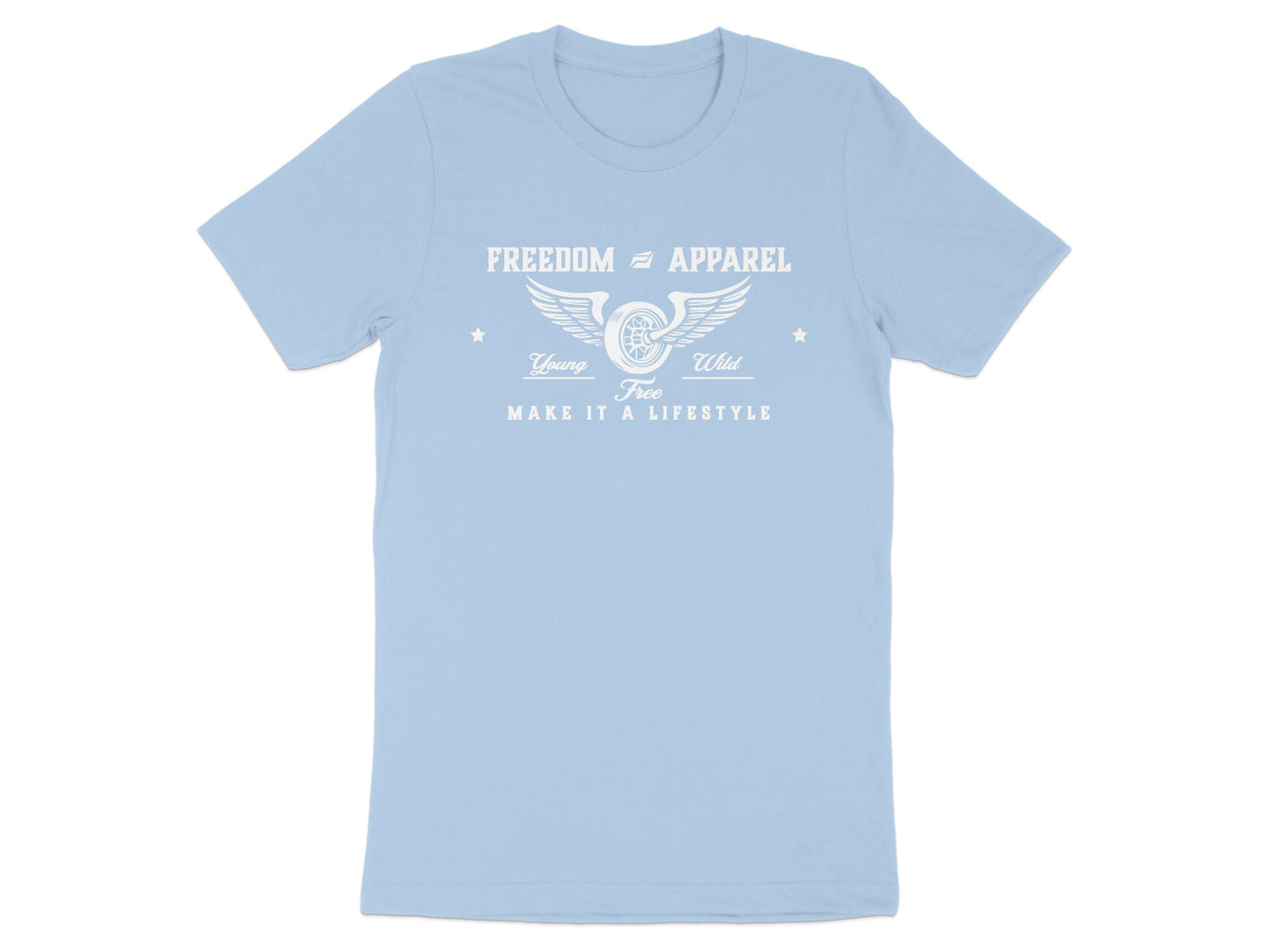 Embrace the adventurous two wheel spirit and represent having the wind blowing thru your hair wearing the Wild and Free Tee!